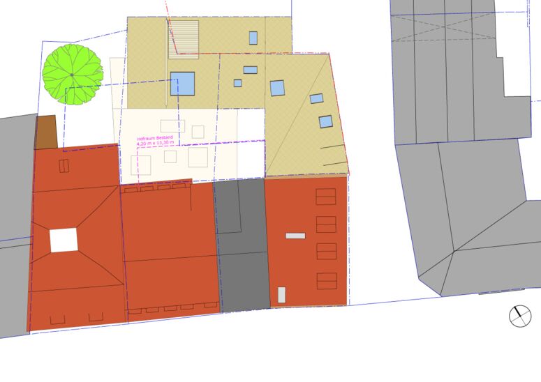 Unser städtebauliches Konzept aus kleinem L und großem U löst nach innen und nach außen, auf Mikro- und Makro-Ebene, alle Probleme des Ortes. Es erschließt allen Anrainern enorme atmosphärische und wirtschaftliche Vorteile. Aufgrund der geometrischen und juristischen Komplexität des Ortes konnte gleichwohl bis heute noch kein finaler Beschluss mit der Stadtverwaltung und den Nachbarn - Stadtwerke, Innenministerium und katholische Kirche - gefasst werden. Bis zur Umsetzung unseres Entwurfes liegt noch etwas Arbeit vor uns.
