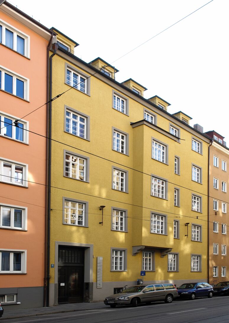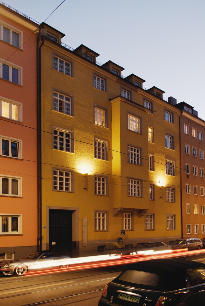 Im Münchner Stadtteil Schwabing-West, in der engen, gekrümmten Hohenzollernstraße, stand ein verrußtes und schmuckloses Wohn- und Geschäftshaus, grob verputzt, dunkelbraun gestrichen, mit großen Fenstern und in der Mitte einem trutzigen Erker. Unsere Recherchen ergaben, dass das Gebäude ursprünglich im Jugendstil als elegantes Wohngebäude mit Stuck und Balkonen errichtet wurde. Nach schwerer Zerstörung im Krieg wurde es direkt im Anschluss als Not-Lazarett wieder aufgebaut - im Baustil der 1930er-Jahre.