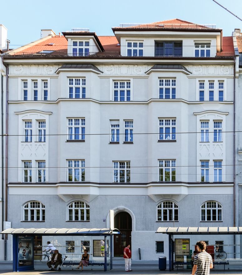 Direkt am Hohenzollernplatz in München-Schwabing steht der stattliche Altbau von 1910. Hier haben wir in minutiöser Abstimmung mit dem Denkmalamt die gesamte Hülle restauriert.