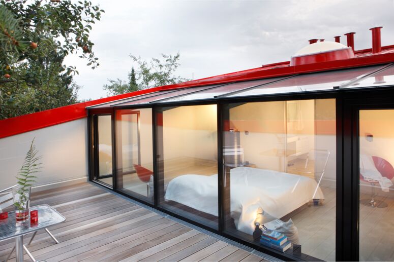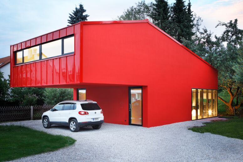 Haus V ist ein außen sehr roter und innen ziemlich roher Wohnhaus-Solitär in München-Unterföhring. Das Haus befindet sich in zweiter Reihe einer ansonsten überaus langweiligen Siedlung aus der Nachkriegszeit. Im Norden schließt der weitläufige und aufgrund der Fernwärmetrasse unbebaubare Grünzug des Heizkraftwerks Nord an.