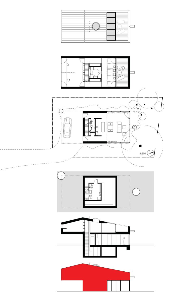 Haus V ist ein innovatives Niedrigenergie- bzw. Passivhaus und könnte der Prototyp einer ganzen Serie sein: Der Entwurf funktioniert nämlich sowohl als Solitär als auch als Doppelhaus oder, beliebig oft aneinandergereiht, als Reihenhaus. Der Entwurf von Haus V ist das Ergebnis unserer fortwährenden Suche nach dem idealen Wohnen, dem Wohnen von heute.